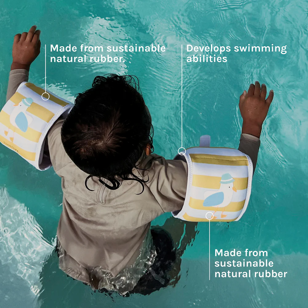 Fabricado con caucho natural sostenible y espuma para mayor flotabilidad, durabilidad y comodidad.