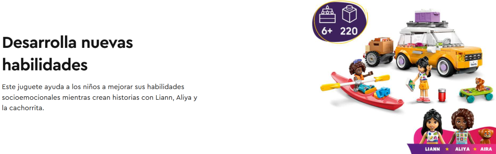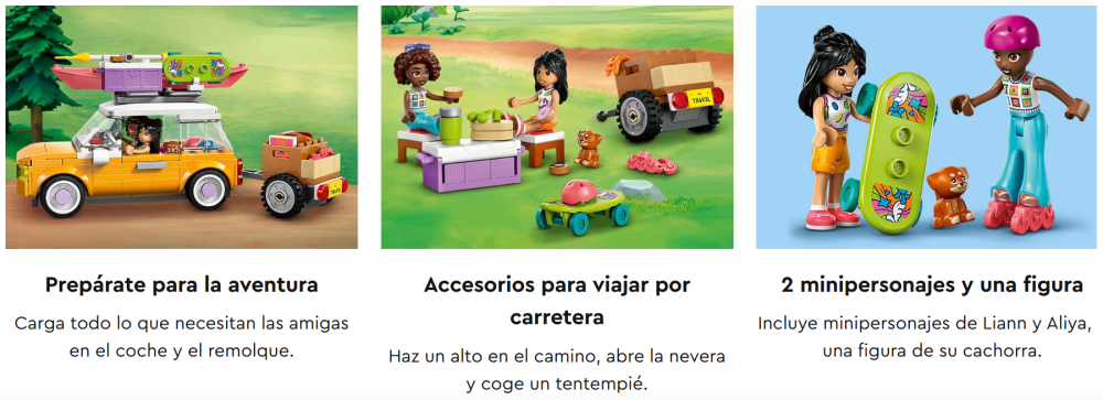 - Un set de construcción repleto de divertido juego simbólico: El set Amistad: Excursión en Coche por Carretera para niñas y niños a partir de 6 años viene con 2 minipersonajes, una figura de una cachorrita y accesorios para interpretar historias