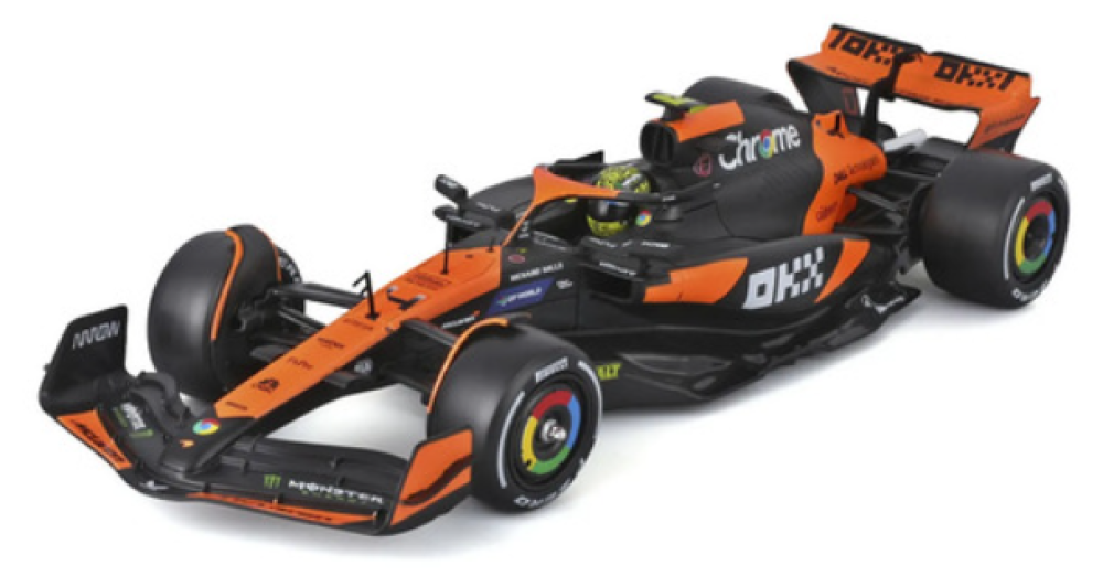 Cuenta con neumáticos de goma de perfil realista y una aplicación de tampografía profesional que asegura la fidelidad de los patrocinadores oficiales y el característico número 4 del piloto británico. Con una longitud aproximada de 22 cm, este modelo ofrece el equilibrio ideal entre tamaño, ligereza y realismo, convirtiéndose en un objeto de colección destacado para cualquier fanático del automovilismo.