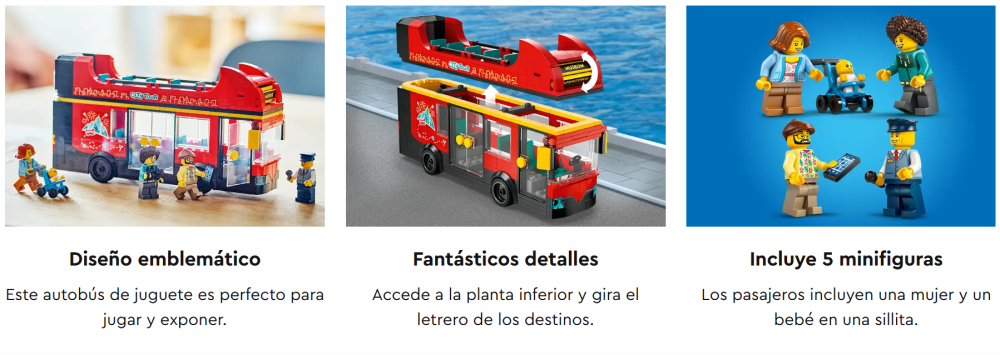 Dimensiones: El autobús de dos plantas de este set LEGO® City de 384 piezas mide aproximadamente 11 cm de altura, 21 cm de longitud y 6 cm de anchura