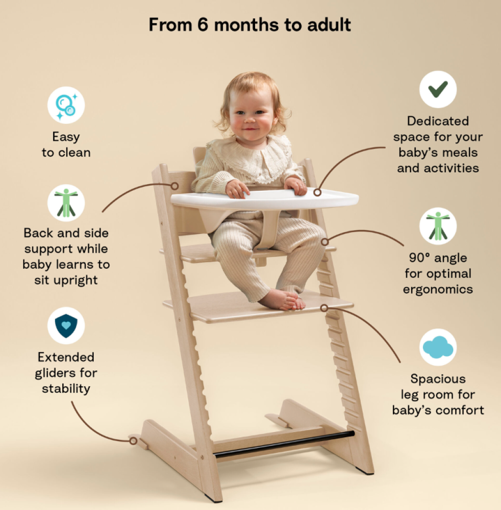 La Bandeja Stokke® proporciona un espacio dedicado para las comidas y actividades del niño, diseñado para que no te cueste limpiarla y te resulte práctica de usar a diario.