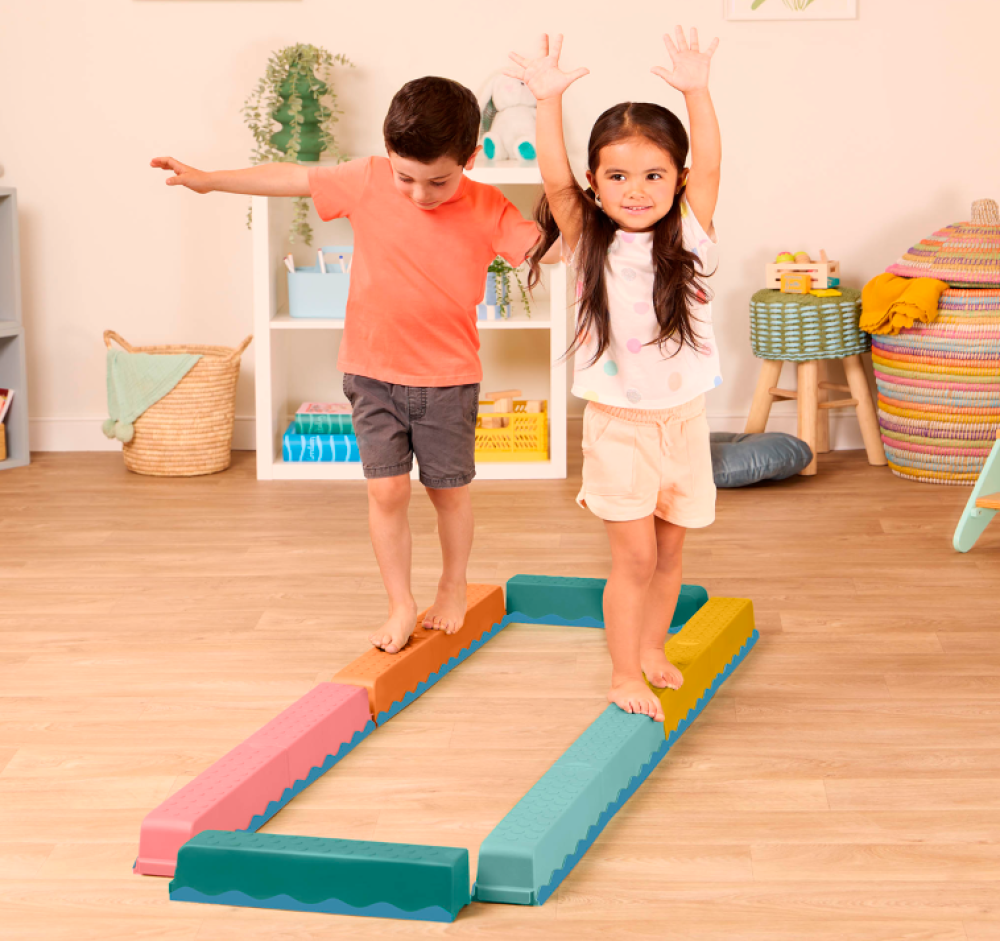 Construye una barra larga, un circuito en zigzag o cualquier otra cosa que se te ocurra: ¡es facilísimo! Jugar con este set de viga de equilibrio contribuye al desarrollo saludable de los niños, mejorando su motricidad gruesa y manteniéndolos físicamente activos. A