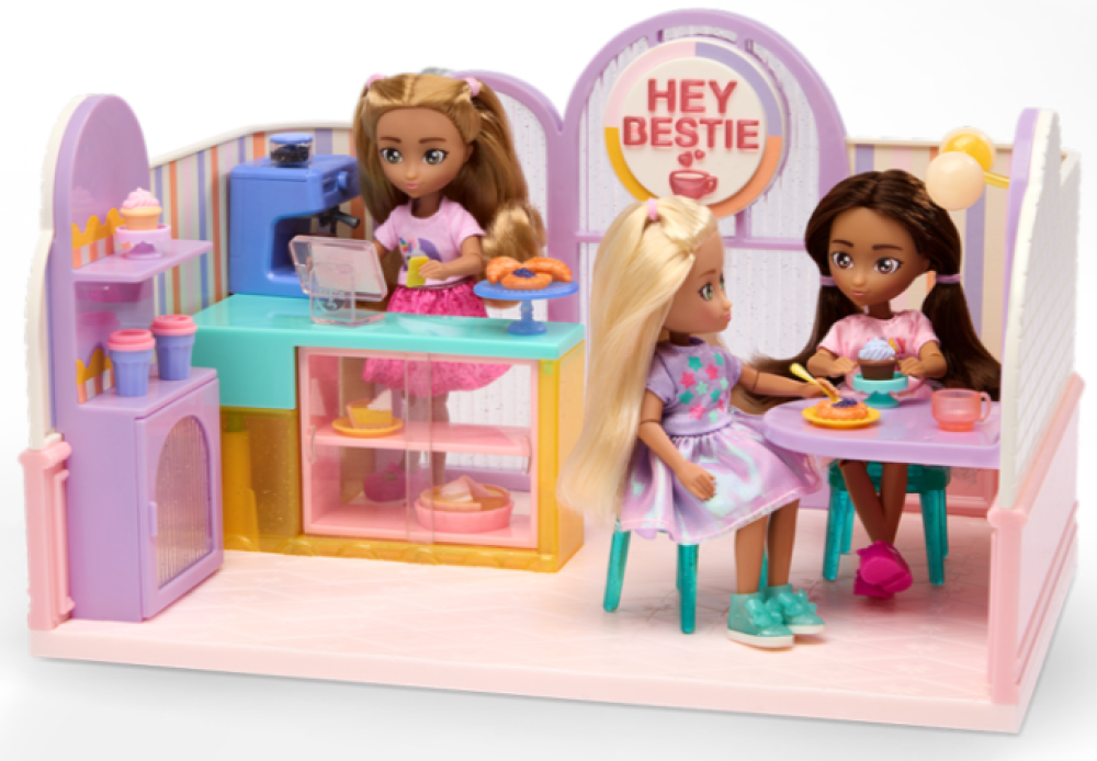 ¡La cafetería Hugs & Mugs ofrece un juego fresco e imaginativo! Descubre un mundo de amistad con todas las muñecas y sets de juego de Hey Bestie.