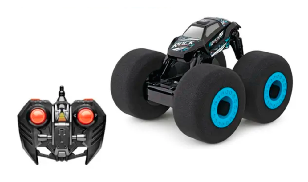 Camión monstruo Stlint RC de HST. Este camión monstruo totalmente funcional cuenta con un joystick dual.