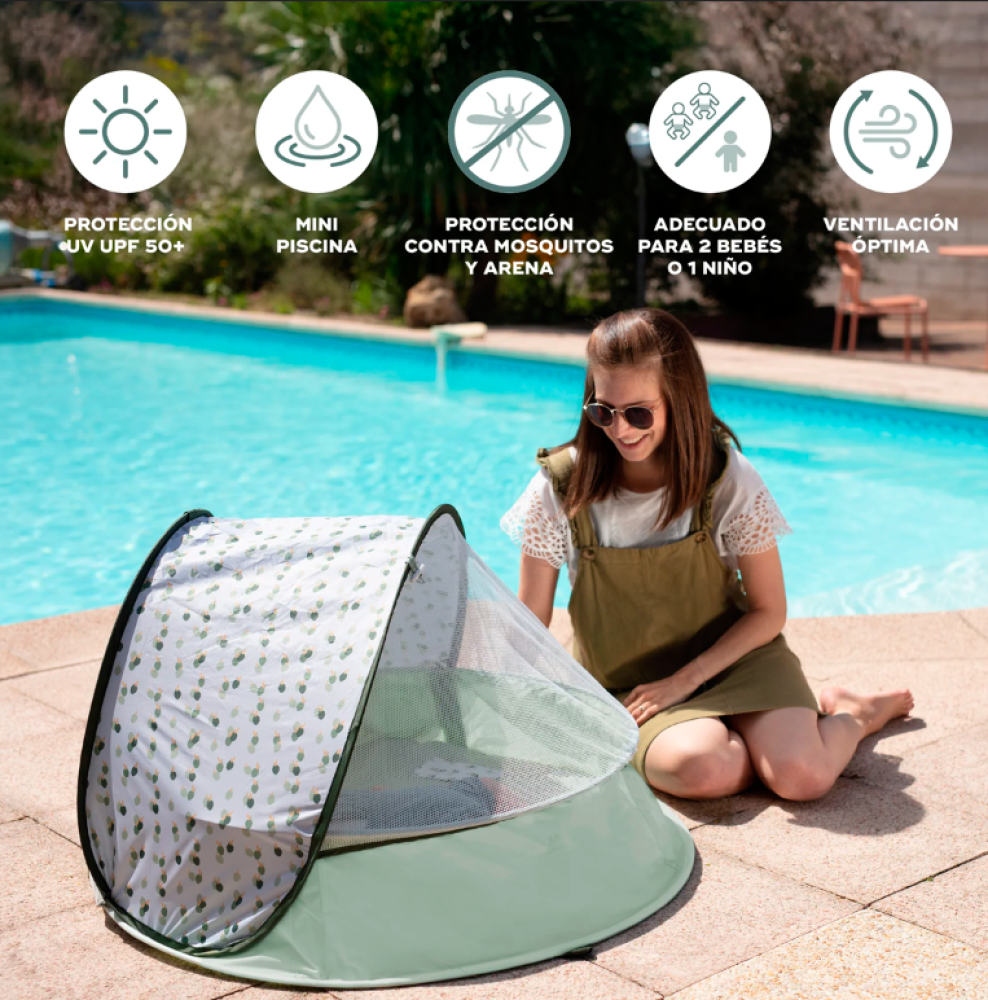 Disfruta del buen tiempo con tu bebé sin renunciar a la seguridad ni a la comodidad. La Aquani es la solución perfecta para proteger a tu pequeño del sol, los insectos y el viento mientras juega, descansa o se refresca.
