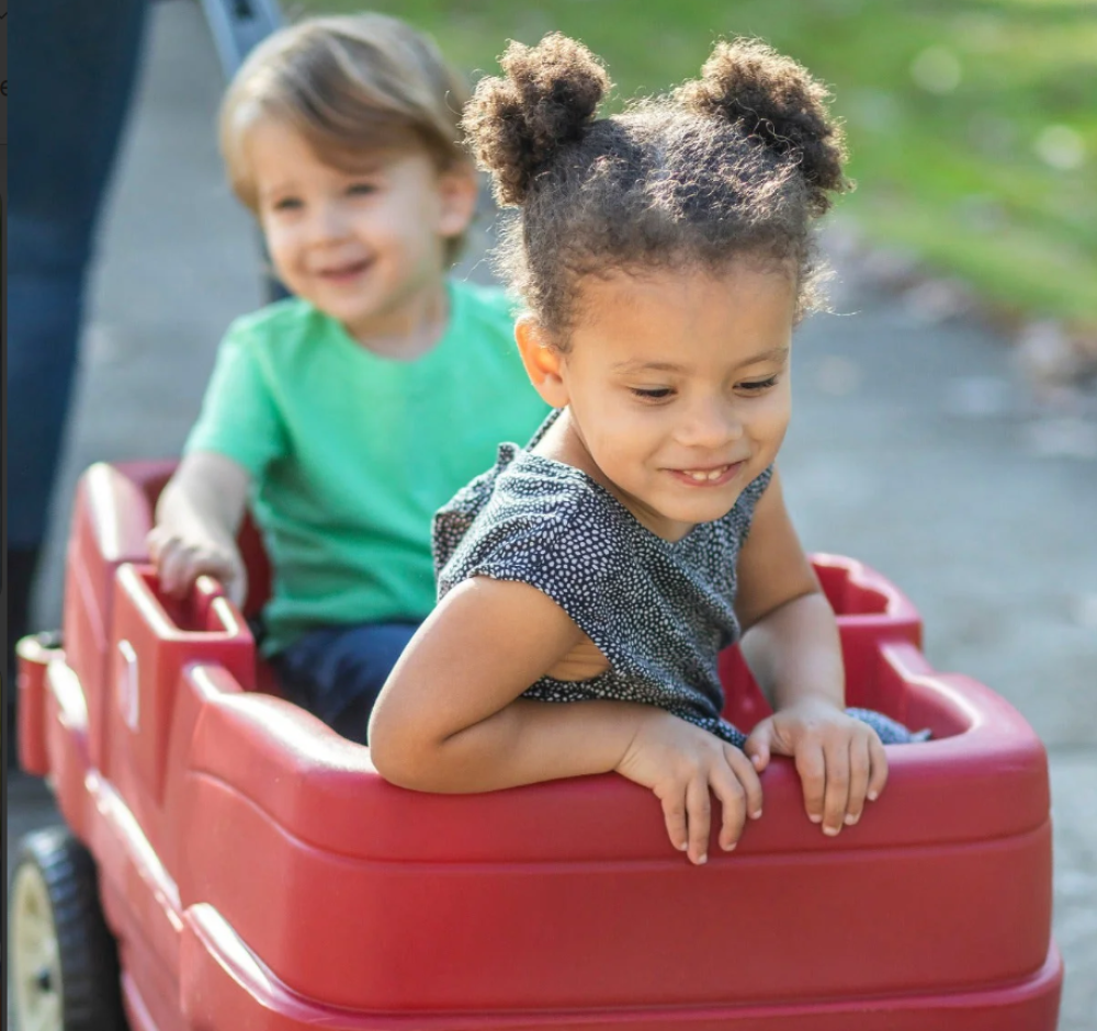 Comodidad y durabilidad se unen en la espaciosa Neighborhood Wagon™ de dos plazas de Step2. Cuenta con asientos contorneados, un espacio profundo para los pies y llantas de suave rodadura para que los pequeños disfruten de un viaje cómodo sin importar el destino.