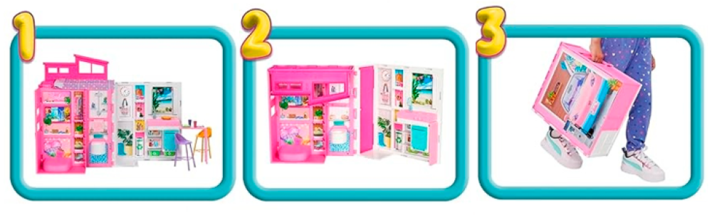 ¡Los niños y las niñas pueden imaginar muchas historias encantadoras con esta muñeca Barbie y su Getaway House! Viene con 4 áreas de juego y 11 accesorios para disfrutar de horas interminables de diversión.