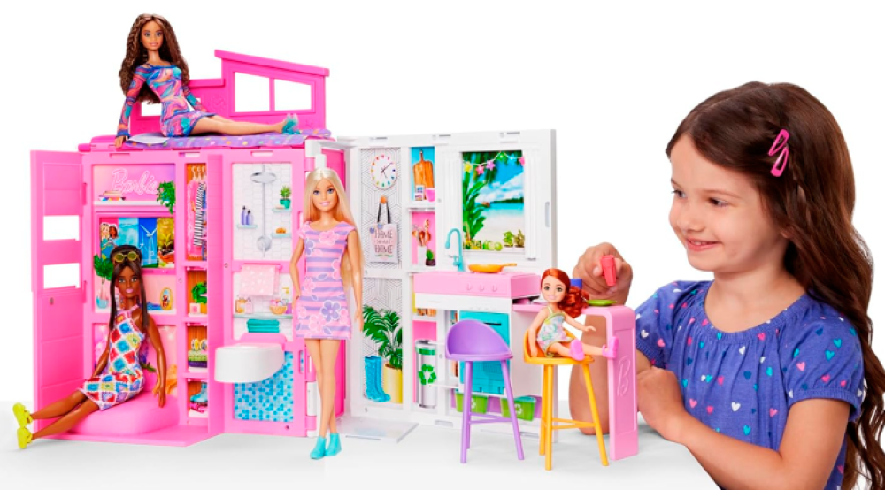 Viene con una muñeca Barbie, así como con accesorios encantadores para decorar. Con cuatro áreas de juego para dar rienda suelta a la imaginación (una cocina, un baño, un dormitorio en alto y un rincón de películas), la Barbie Getaway House es un regalo perfecto para niños y niñas a partir de 3 años.