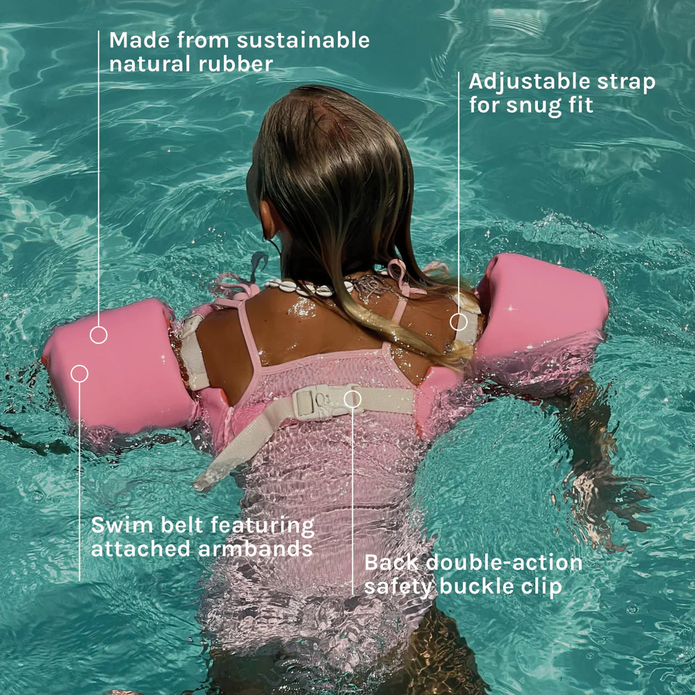 • Cinturón de natación con brazaletes adjuntos para una mayor libertad al nadar.
