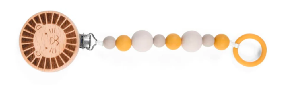 Clip sujetador chupete colgante madera silicona león Moulin Routy