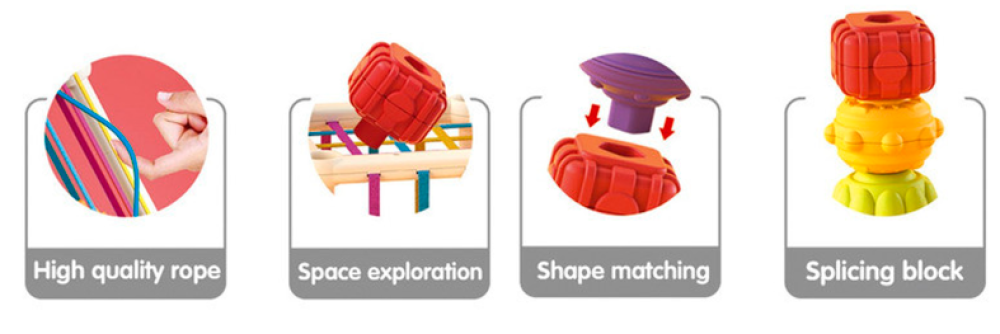 Cubo de juguete de actividad educativa, colorido, formas.