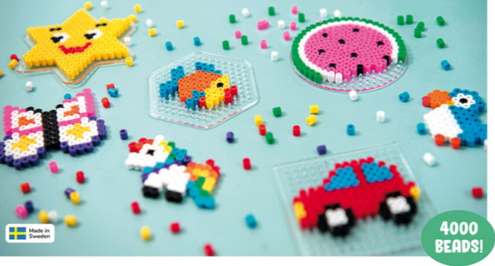 Este paquete contiene un total de 4000 cuentas de colores brillantes y 4 plantillas para plancharlas.