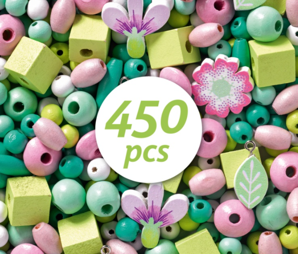 Usa este precioso juego de cuentas de madera de Djeco para crear joyas preciosas.