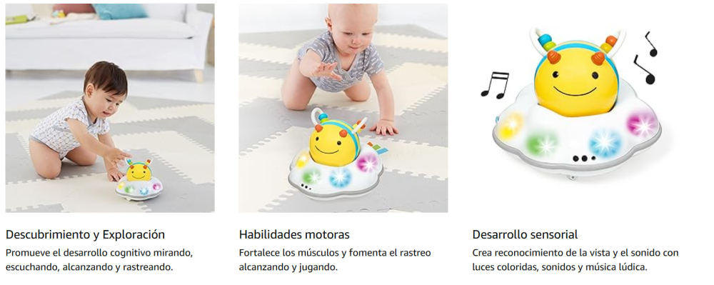 Diseñado para crecer con tu bebé a través de tres etapas, nuestro juguete de gateo motorizado desafía y anima a los más pequeños a aprender a gatear con luces coloridas, melodías energéticas y dulces zumbidos.