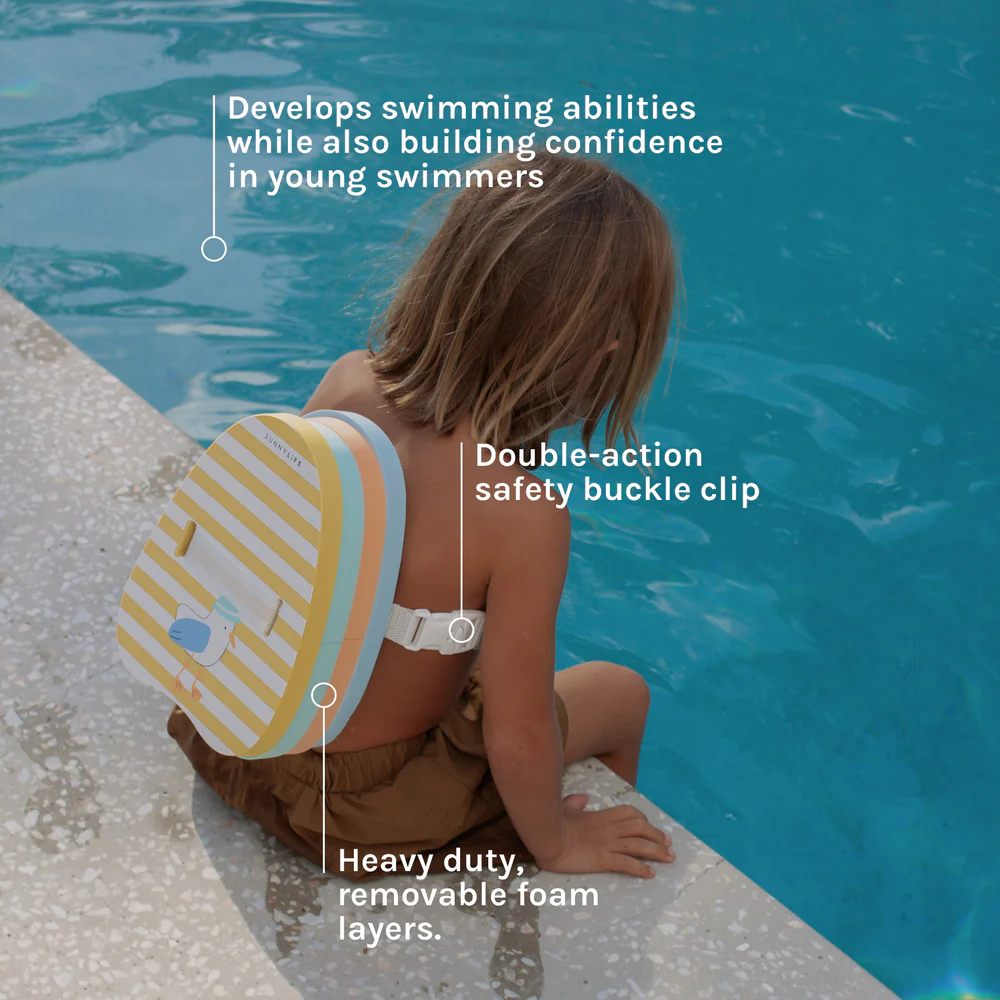 Ayuda a los pequeños nadadores a ganar confianza con el flotador Bubble Back, diseñado para apoyar su desarrollo mediante flotabilidad ajustable. Cuenta con capas de espuma resistentes y extraíbles, una correa ajustable y una hebilla de seguridad de doble acción para un ajuste seguro y cómodo.