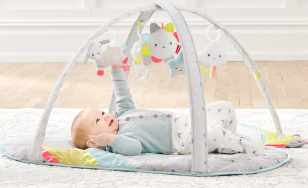 Cinco adorables juguetes colgantes estimularán los sentidos del bebé con luces, música y mucho más, mientras que la mullida colchoneta y la nube de felpa ofrecen el máximo confort para explorar el tiempo boca abajo del bebé y sus juguetes.
