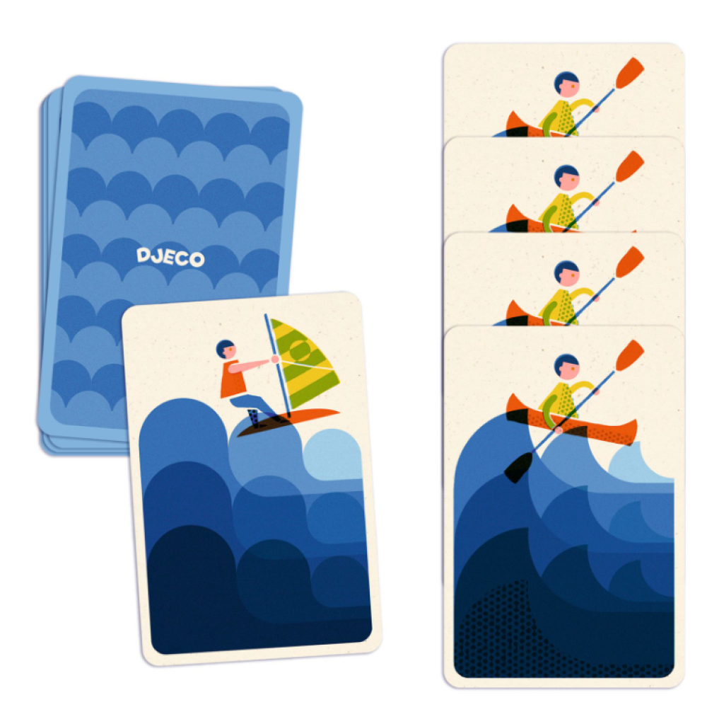 El juego de cartas Aquarush de Djeco se desarrolla entre el viento y las olas: Ya sea en tabla de surf, canoa, windsurf o stand-up paddle, todos esperan la ola perfecta, pero no esperes demasiado: ¡las cartas deben tomarse en el momento justo, aunque sea arriesgado! Un desafío rápido y estratégico para toda la familia.