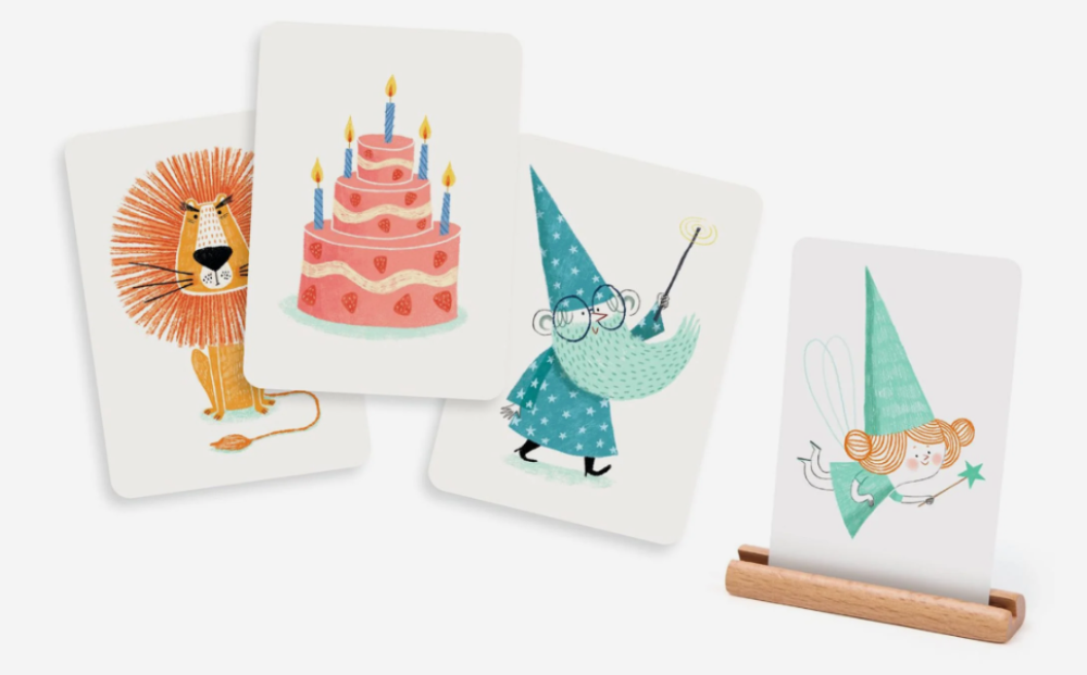 En este juego de cartas, los jugadores revelan sus cartas haciendo preguntas. ¿Quién soy? ¿Eres un animal? ¿Un objeto con ruedas? ¡Adivina rápido para ganar!