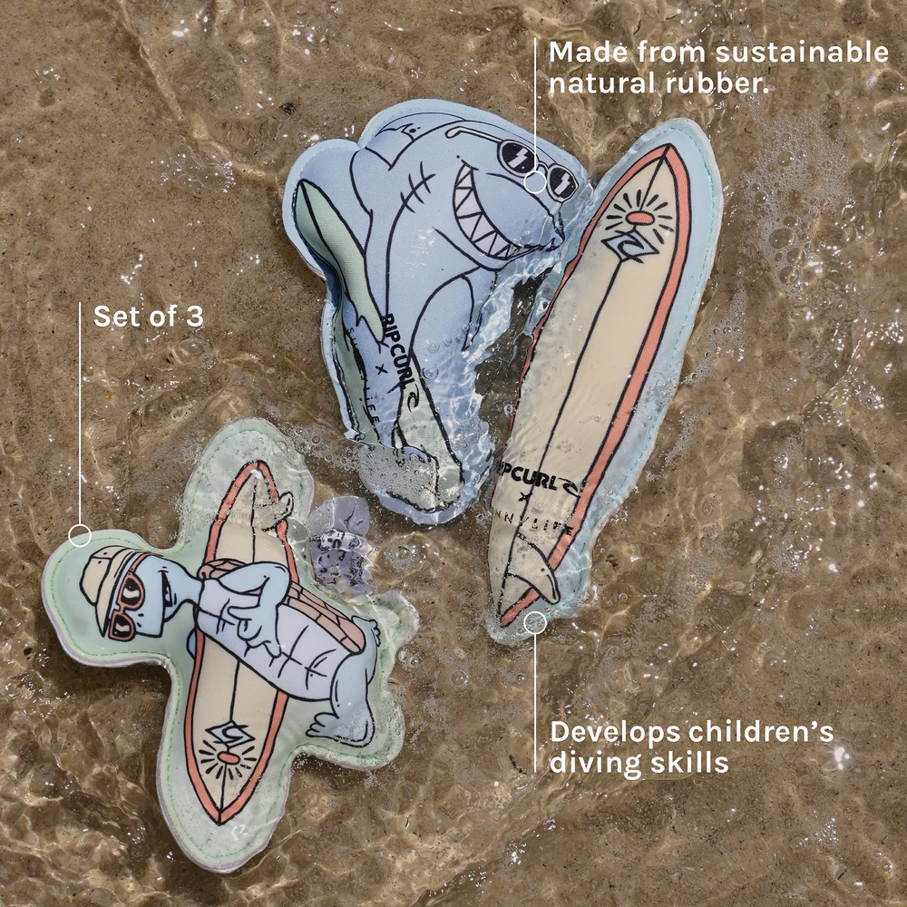 ¡Sumérgete en el verano! Los flotadores SUNNYLiFE x Ripcurl Dive Buddies están diseñados para jugar en el agua y desarrollar habilidades acuáticas. Aumenta tu confianza en el agua, diviértete a lo grande y vive al máximo el verano con el accesorio más adorable de la temporada.