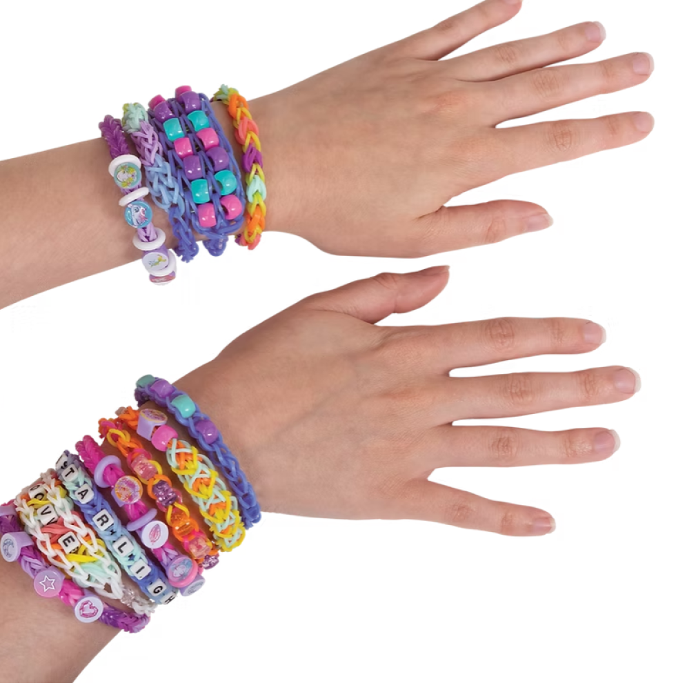 Con 2 Mighty Looms™ y 2 Auto Looms™ de Rainbow Loom®, puedes diseñar pulseras deslumbrantes en paralelo. ¡Incluye cuentas y dijes exclusivos de Estrellas Nebulosas para crear pulseras cósmicas de ensueño!