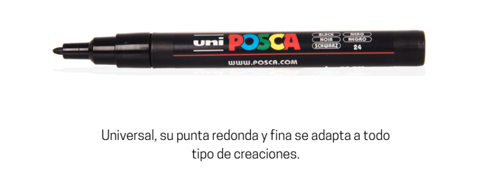 Marcador de pintura a base de agua, de colores intensos y vibrantes que realzarán tus diseños sobre todo tipo de superficies. Ideal para artesanías, ilustración, dibujo, caligrafía, vidrieras y todo lo que quieras personalizar. Deja tu marca creativa con uni POSCA.