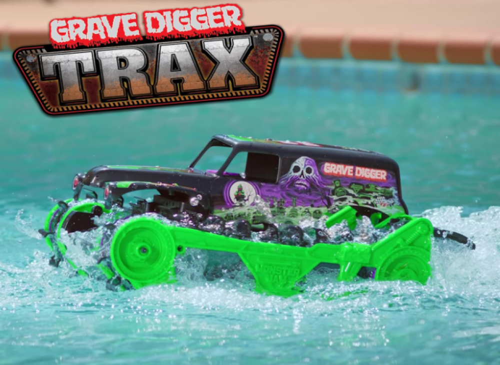 Conquista cualquier terreno: con un diseño único, con bandas de rodadura de tanque para todo terreno, Grave Digger Trax viaja y flota a través del agua con facilidad.