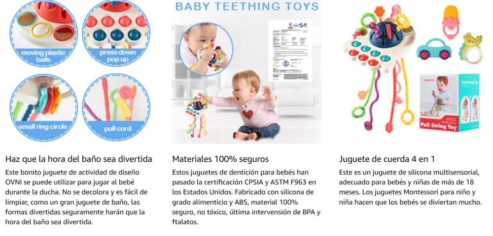 Promueve la motricidad fina y la coordinación mano-ojo (a partir de los 18 meses)El juguete Montessori con cordón para bebés ayuda a los bebés a partir de los 18 meses a desarrollar sus habilidades motoras finas y su coordinación mano-ojo . Tirando y empujando las cuerdas, los pequeños entrenan los músculos de sus manos y mejoran su destreza.