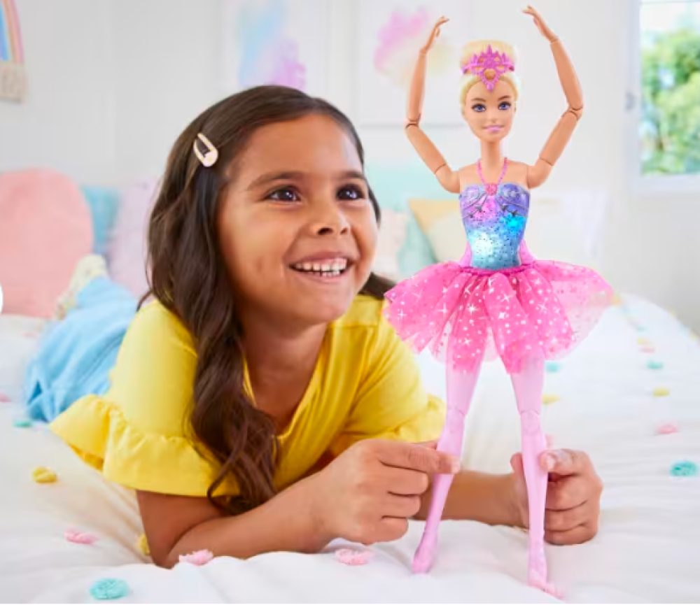 - ¡Todo es más mágico en el ballet! Cuando bailan, las bailarinas de Barbie brillan con los preciosos detalles de luces de sus conjuntos.