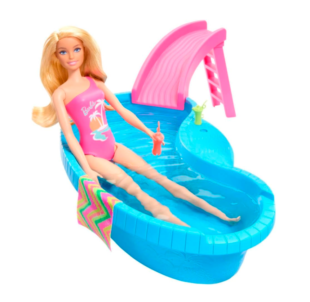 Muñeca Barbie Piscina, tobogán y Accesorios