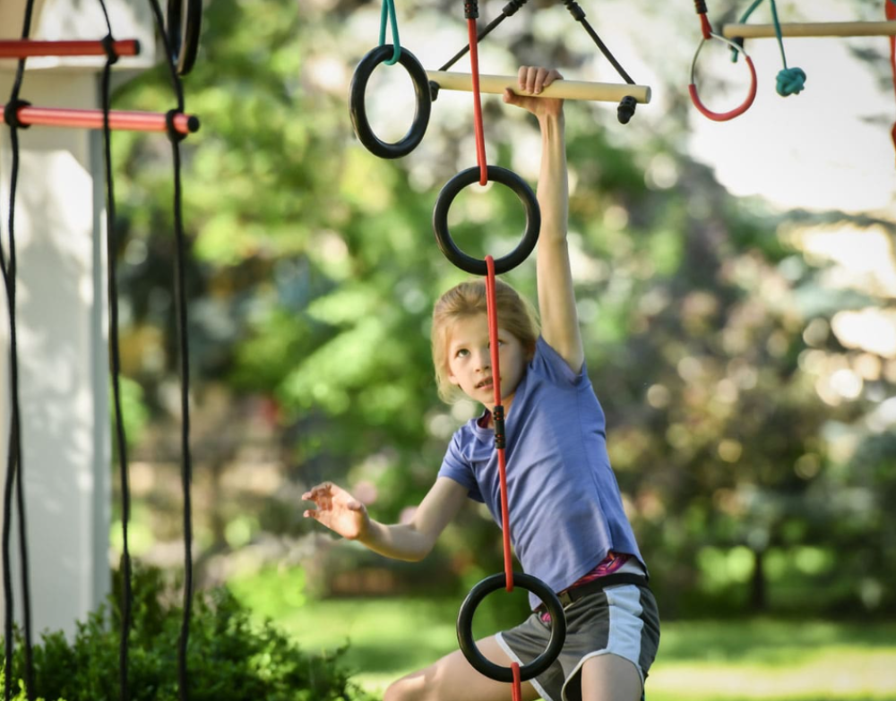DIVERSIÓN SIN FIN: 9 obstáculos colgantes divertidos y únicos diseñados y fabricados por Slackers exclusivamente para Slackers Ninjaline. Diviértete jugando y entrenando como un verdadero ninja con nuestro exclusivo Slackers Ninjaline. Crea tu propio gimnasio en el patio trasero. Observa a tus hijos jugar en el aire y desatar al guerrero que llevan dentro.