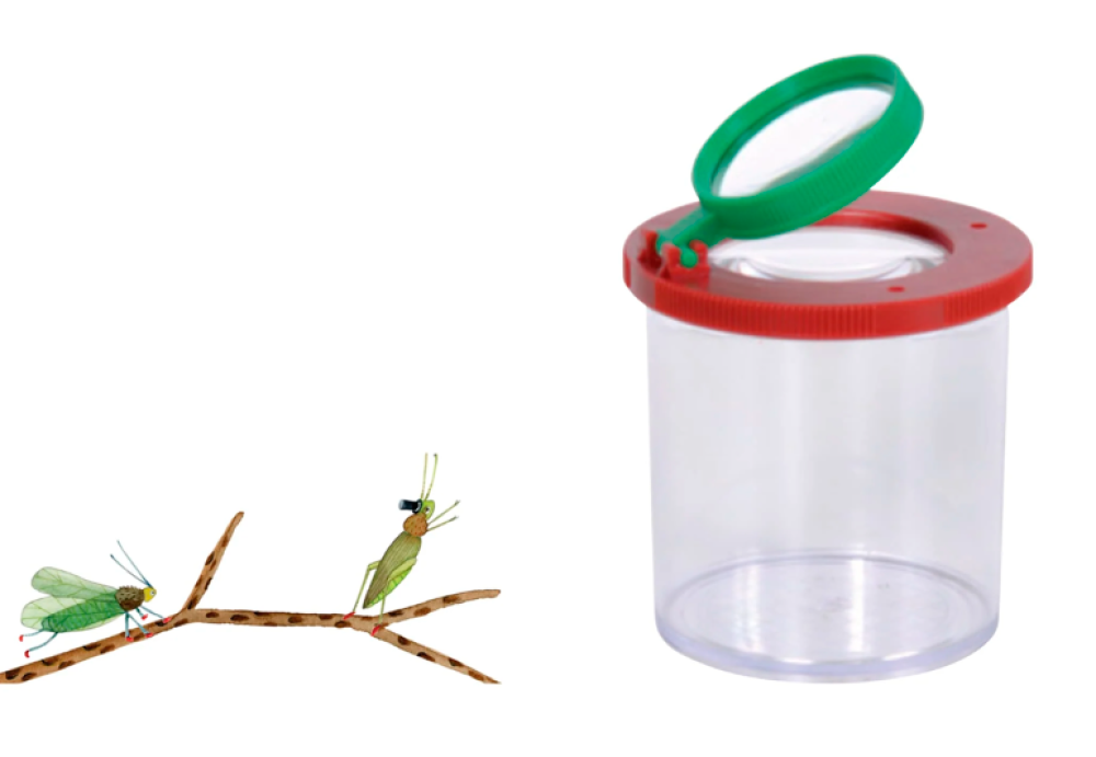 Esta caja de insectos de juguete es adecuada para niños a partir de 3 años. Desenrosca la tapa del frasco y atrapa con cuidado un insecto. Gira la tapa con la lupa puesta y observa al animal de cerca. Ahora podrás ver todos los detalles. Y si ya has tenido suficiente, libera al animal en su hábitat natural.