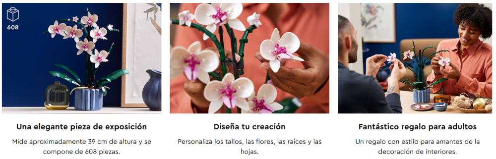 Disfruta de la experiencia: Relájate y recréate con este proyecto de construcción. Date el gusto de tener el set LEGO® Orquídeas, diseñado para constructores adultos, o regálaselo a un amante de las plantas