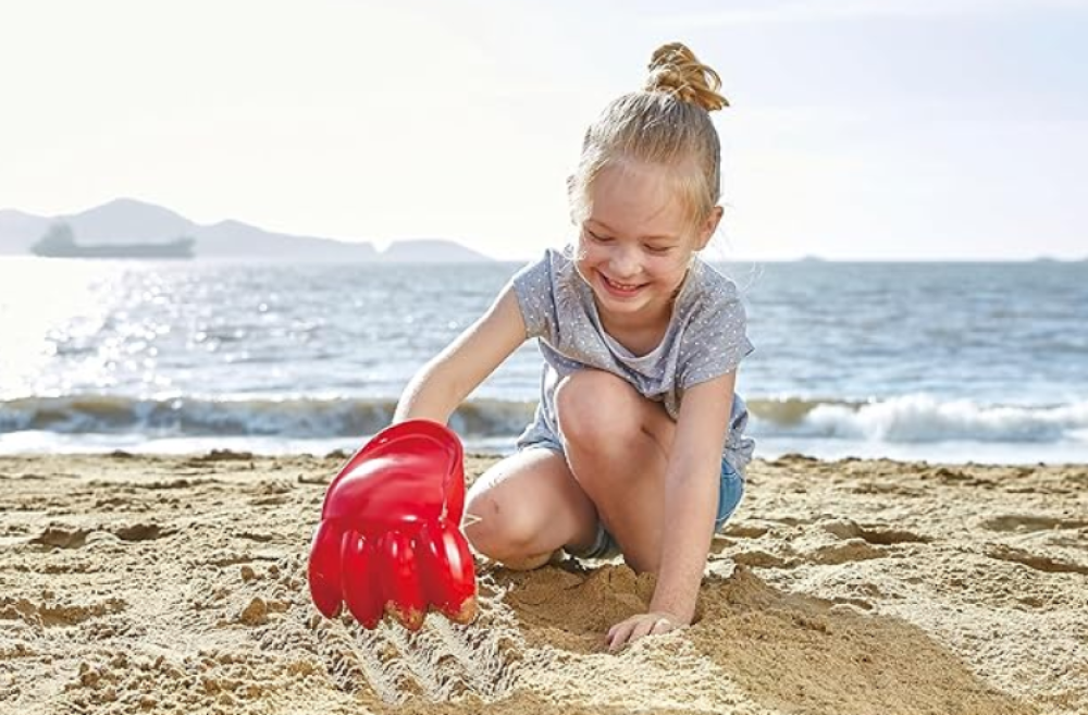 Usa la excavadora para experimentar con volumen, peso y medidas. Añade otros elementos de juego como vasos, conchas, palos, herramientas de jardinería, utensilios y vehículos.