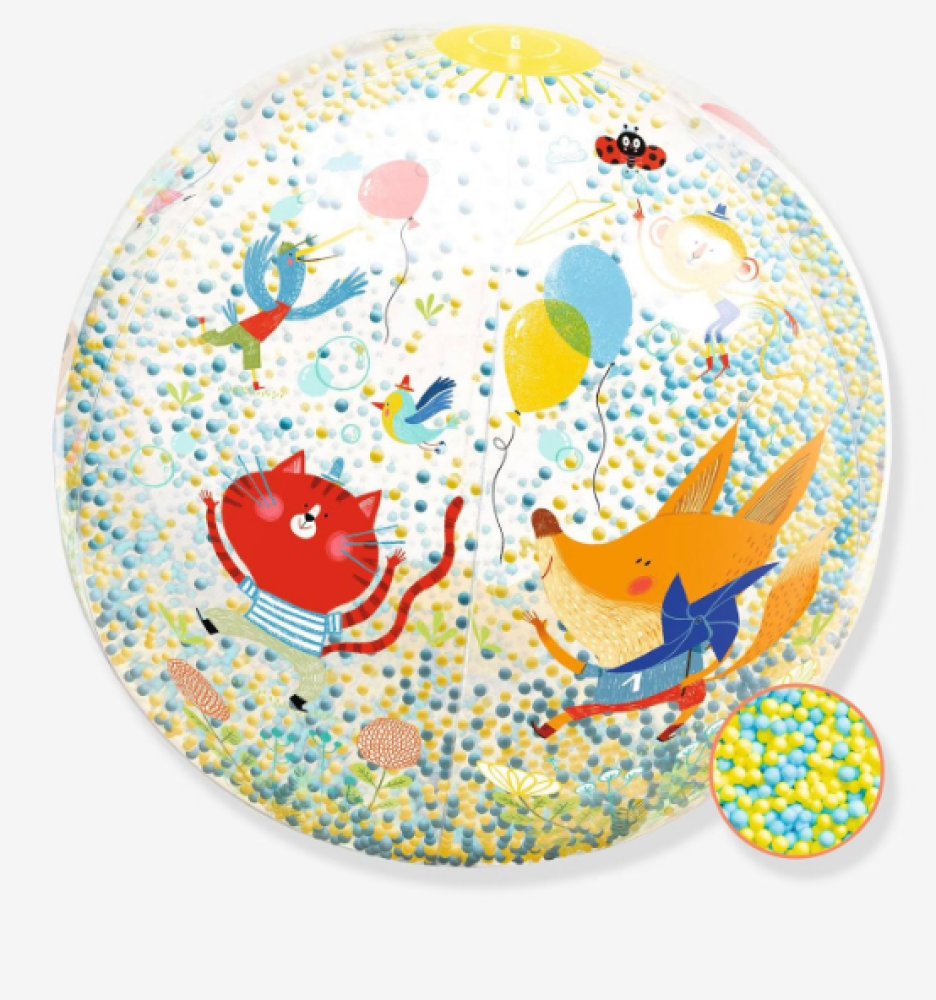 ¡Esta pelota inflable de burbujas de Djeco es perfecta para un día soleado! Llena de pequeñas bolas que imitan burbujas, es fascinante lanzarla.