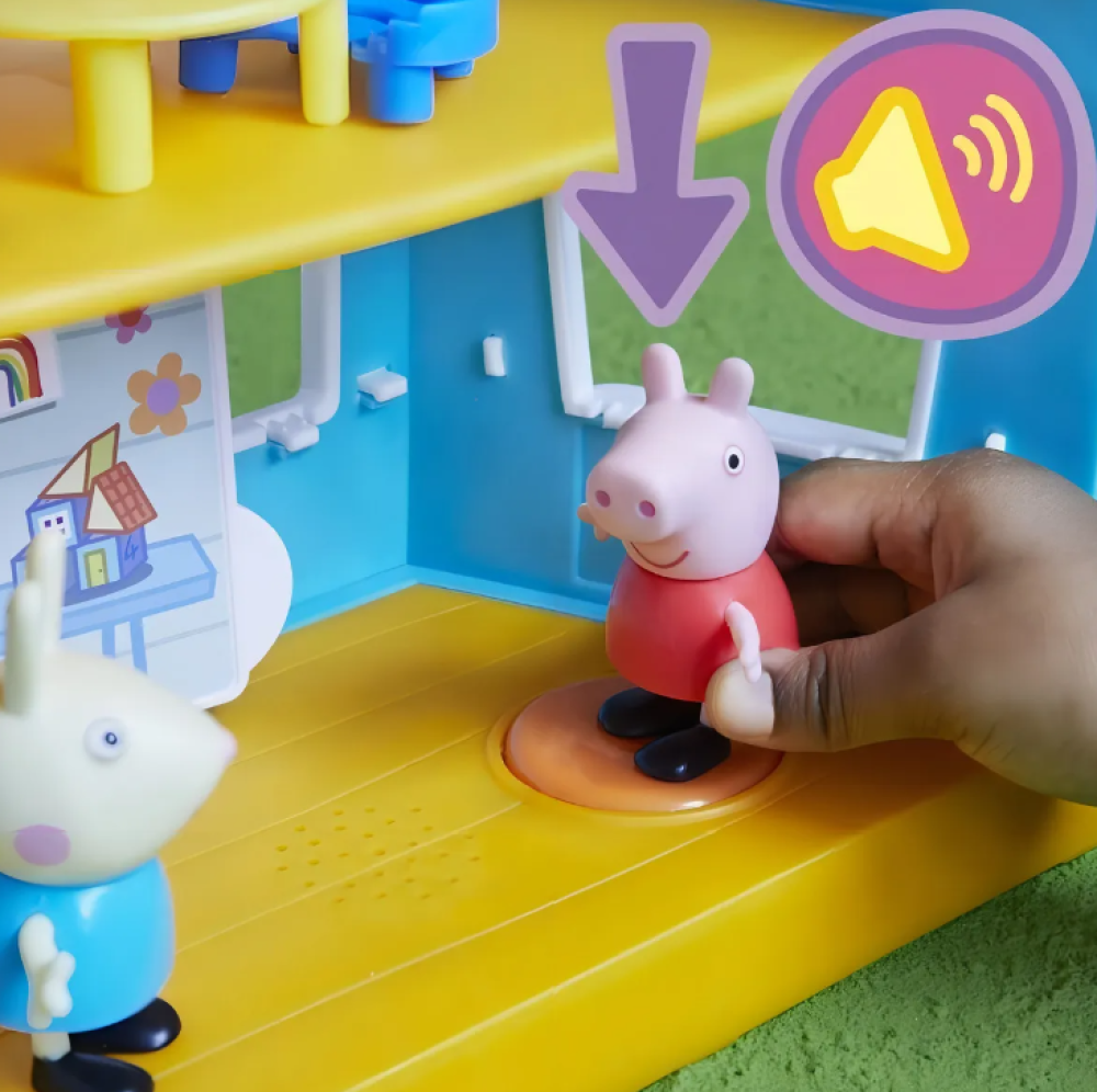 •¡LA PARED MÓVIL CAMBIA LA HISTORIA! La pared móvil muestra una escena de la panadería y una escena de la tienda. Mueve la pared y coloca la figura en la zona de activación para escuchar diferentes sonidos de la casita y frases de la serie