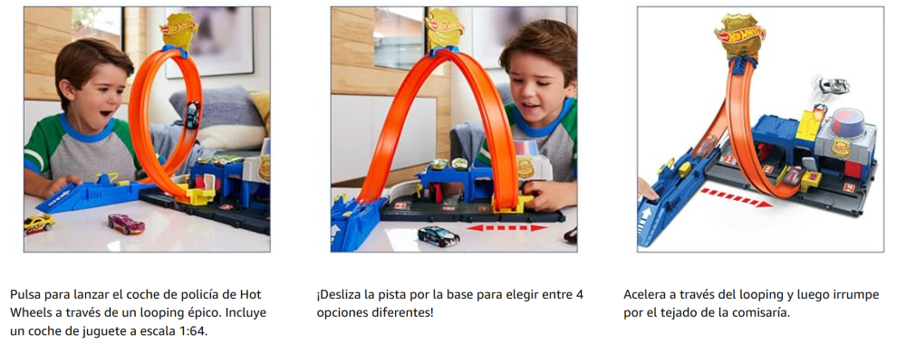 - Elige el segundo carril para correr a través del looping y salir disparado hacia otras aventuras. Conecta más pistas de Hot Wheels a la base para ampliar las posibilidades de narración de historias. (Los tramos de pista adicionales se venden por separado).
