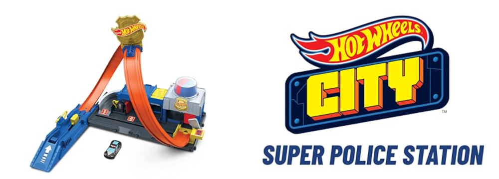 Incluye una Super comisaría de policía de Hot Wheels City y un coche de policía de juguete a escala 1:64.