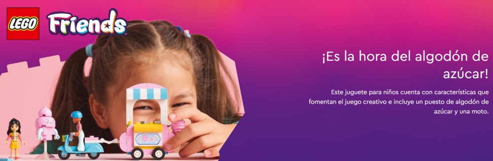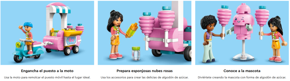 - Set con 2 minipersonajes LEGO® Friends: Incluye 2 minipersonajes y una figura para construir con ladrillos de una mascota con forma de algodón de azúcar