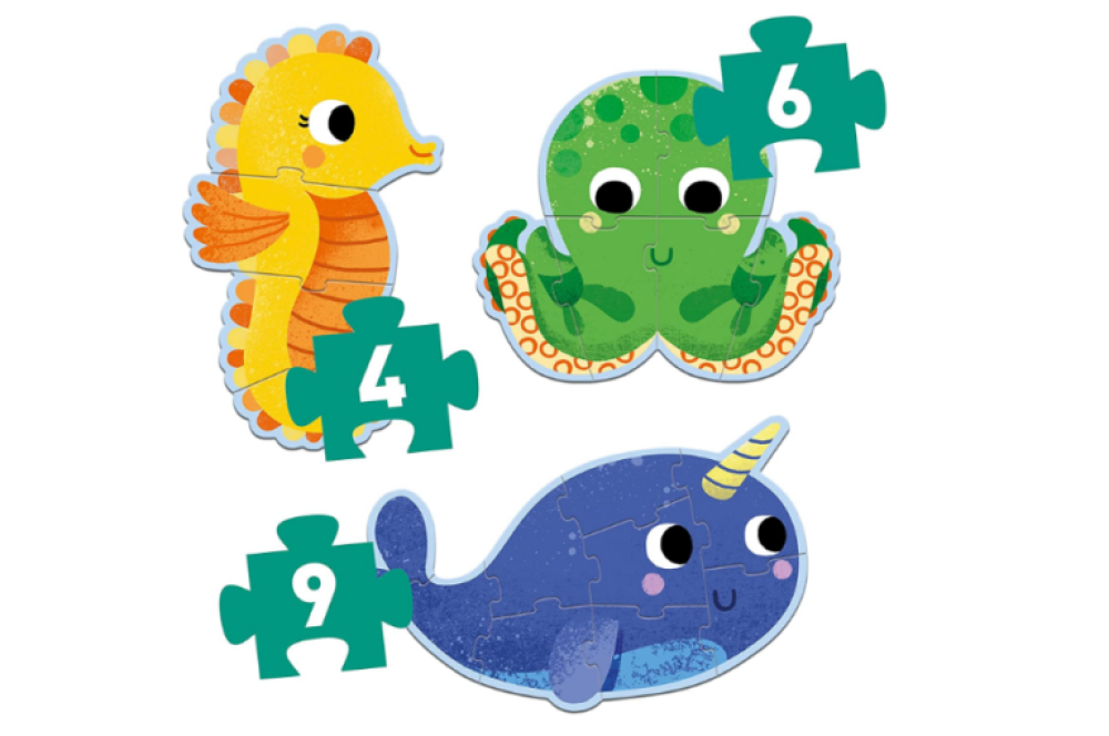 Un caballito de mar de 4 piezas, un pulpo de 6 piezas y una ballena de 9 piezas!Primero clasifica por color, luego construye cada animal uno por uno, cuanto más piezas en cada animal, más desafiante se vuelve