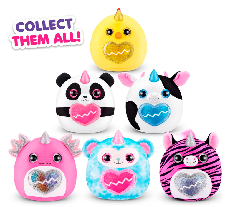 ¡Cada peluche de Eggzania viene con accesorios de Eggzania que se pueden usar, pegatinas, baba de Rainbocorns y un Boo-boocorn!