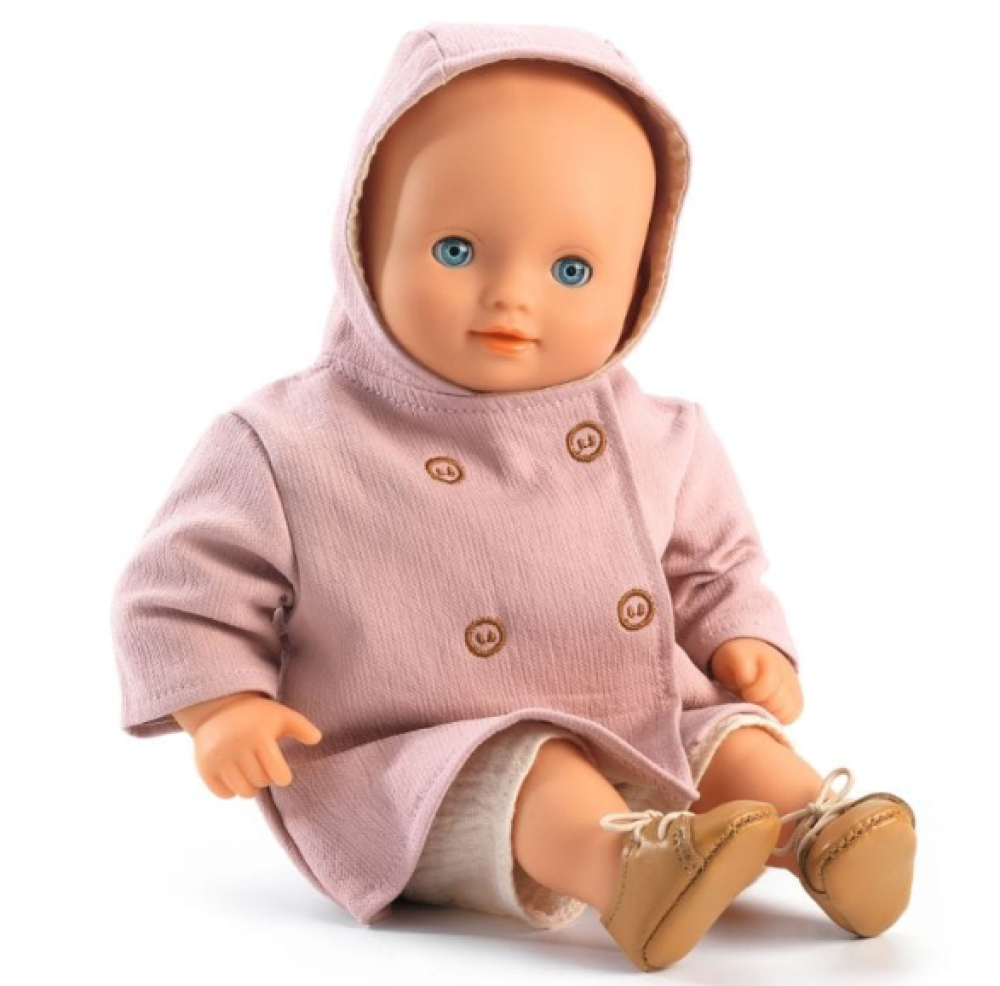 El abrigo rosa con capucha para muñeca pomea de Djeco, es la solución perfecta para los días fríos. ¡ La muñeca e tu pequeña estará a la moda y protegida de la lluvia gracias a su capucha!