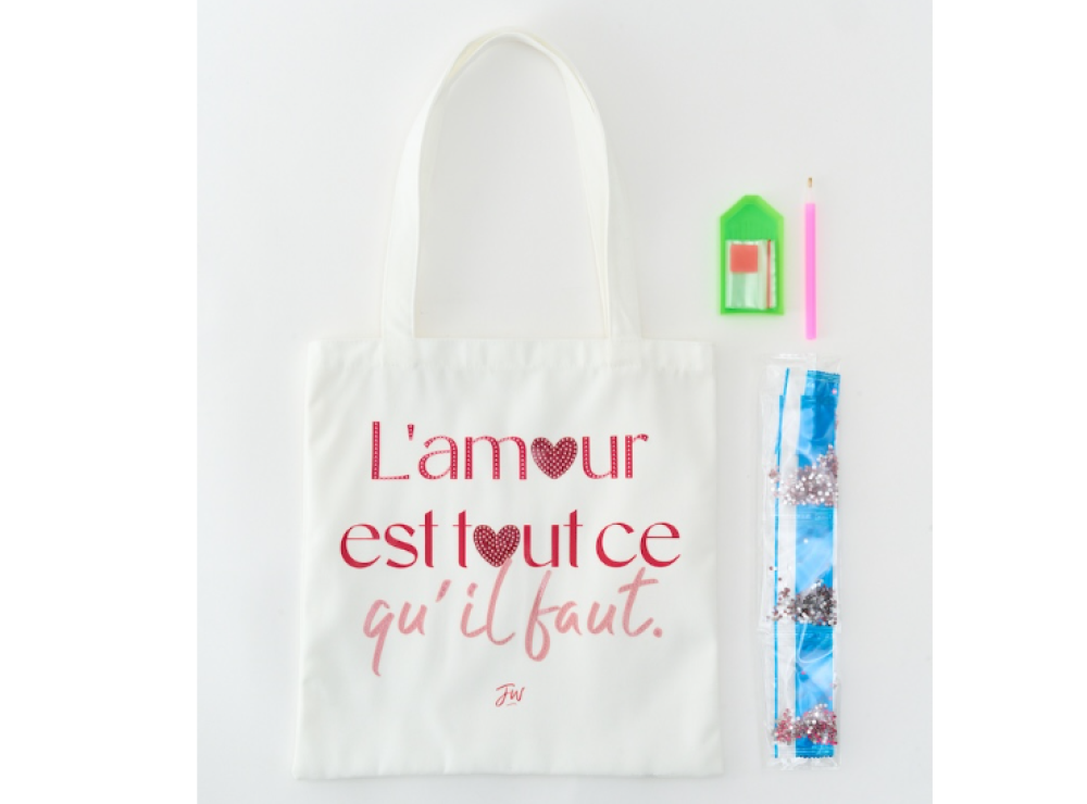 Incluye 1 bolso de mano con diseño para decorar, varias bolsas con gemas, 1 lápiz aplicador, cera, bandeja y hoja de instrucciones.