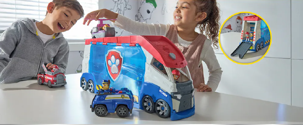 Embárcate en emocionantes misiones de rescate con el vehículo del equipo PAW Patroller lleno de acción.